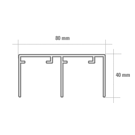 Perfil guia de alumínio anodizado duplo para instalação superior dentro do vão. Fácil e rápido de instalar. Limite de espessura de porta: 22 a 30 mm.